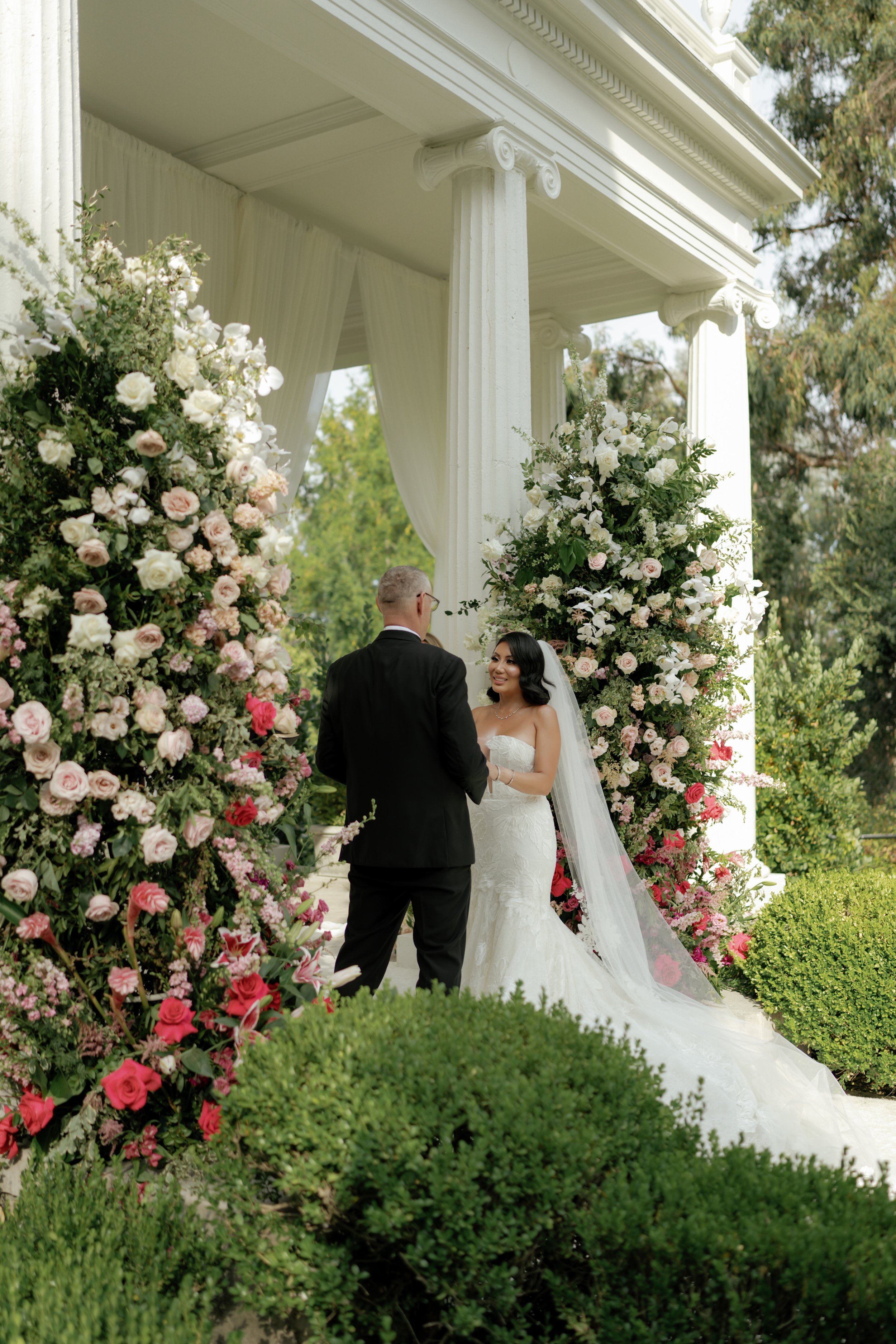 A fairytale unfolds at the enchanting Montalvo Arts Center. Surrounded by lush greenery and cascading floral masterpieces, every moment feels like a work of art and love takes center stage.